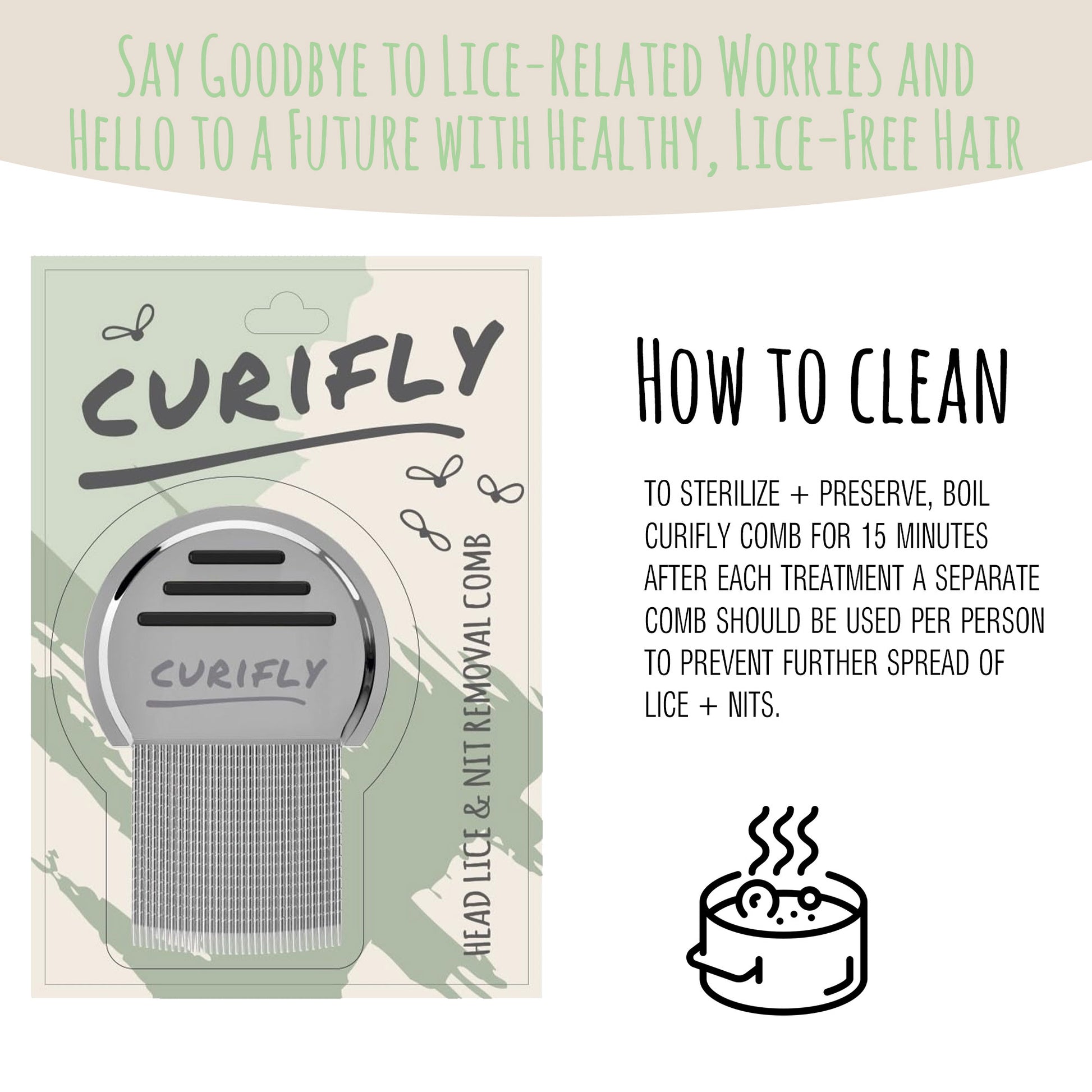To sterilize + preserve, boil Curifly Comb for 15 minutes after each treatment. A separate comb should be used per person to prevent further spread of lice + nits.