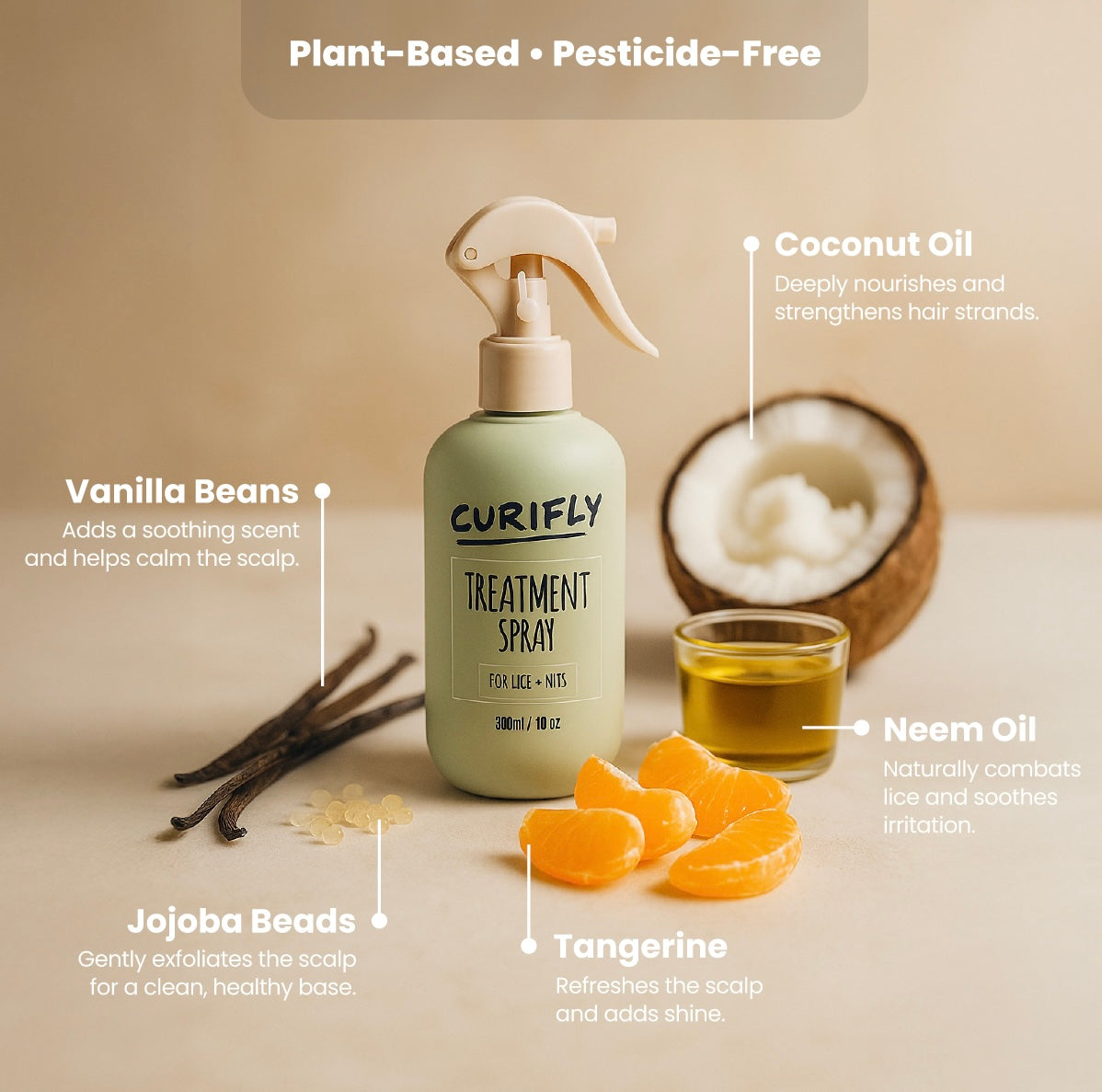 Clean out pesky lice + nits, and end with luscious locks. Our Treatment Spray is the perfect solution to restore your hair’s natural shine and health. Infused with nourishing ingredients like argan oil and keratin, this spray deeply hydrates and repairs damaged hair. Say goodbye to frizz, split ends, and dryness and hello to soft, silky locks